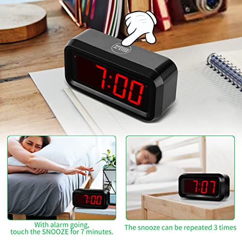 Alarm Clock, Digital Clock, Small Wall Clock, Battery Operated, Adjustable 3-Level Led Brightness, Dim Night Mode, 12/24Hr, Cordless, Constantly 1.2'' Digits Display for Bedroom/Travel, Easy to Set