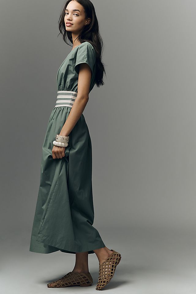 Anthropologie By Anthropologie Waisted Short-Sleeve A-Line Midi Dress