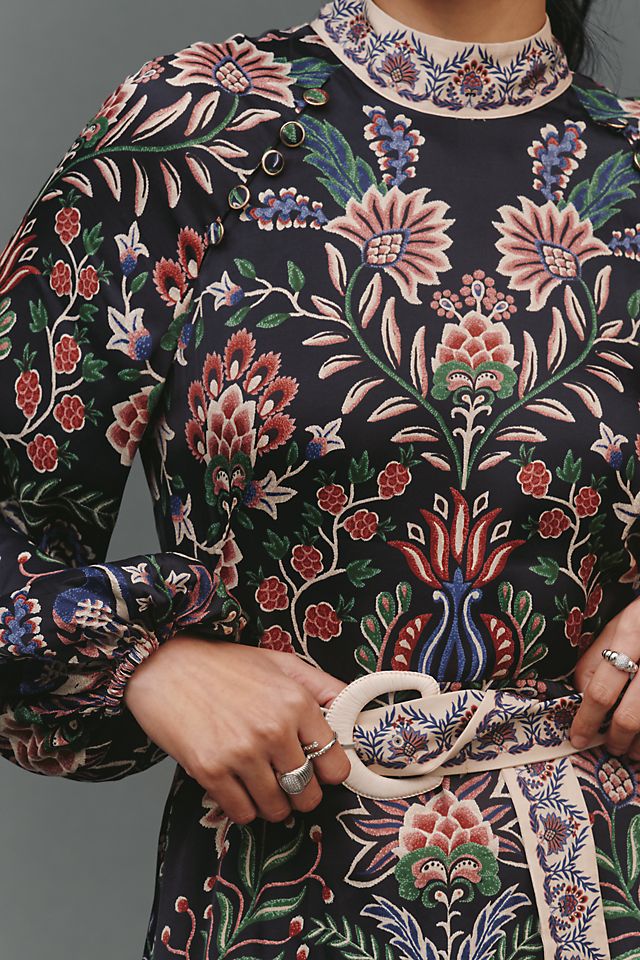 Anthropologie Farm Rio High-Neck Long-Sleeve Midi Dress