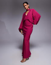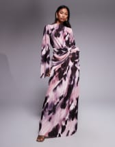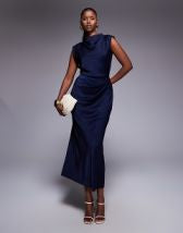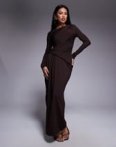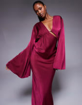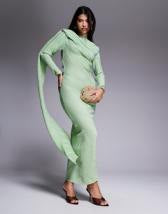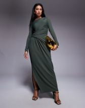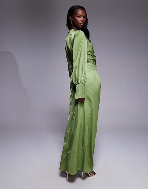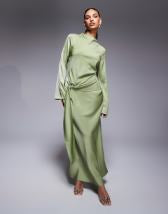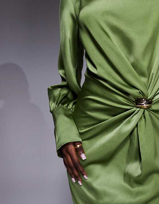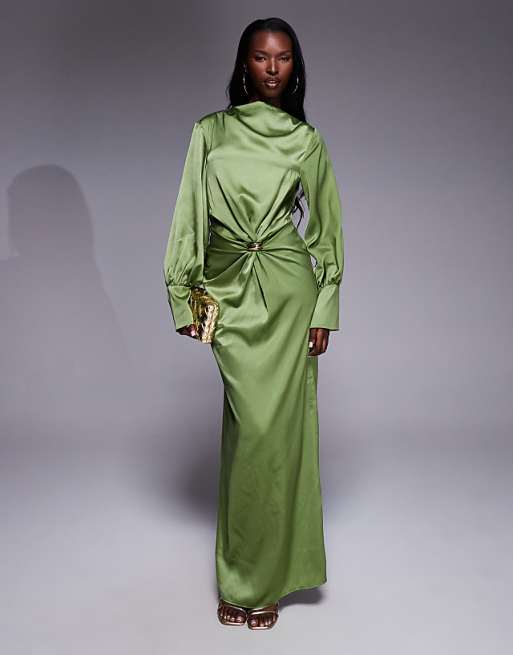 ASOS DESIGN twist front bias satin maxi dress with gold hardware in olive green