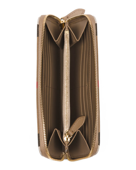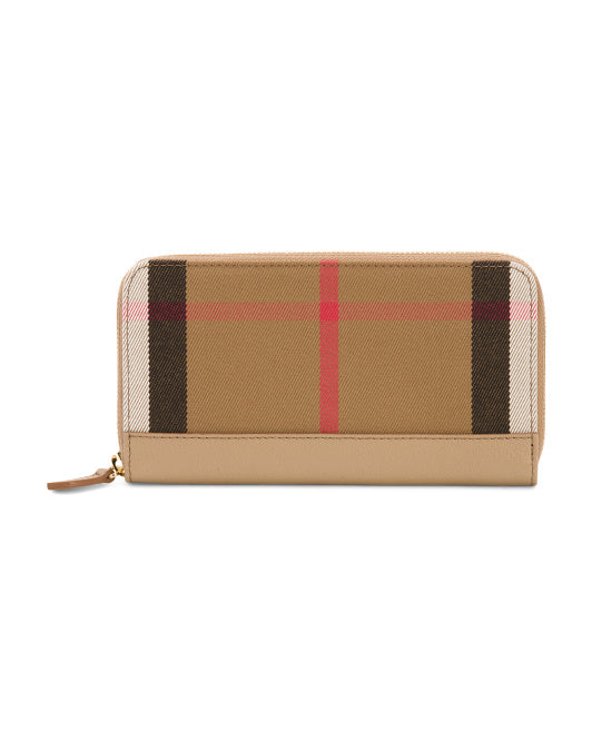 BURBERRY Made In Italy Canvas And Leather Large House Check Zip Around Wallet