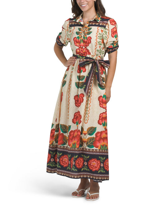 CELINA MOON Short Sleeve Floral Maxi Dress With Belt