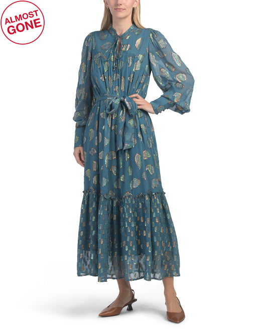 CIEBON Eryn Mixed Metallic Button Cuff Maxi Dress