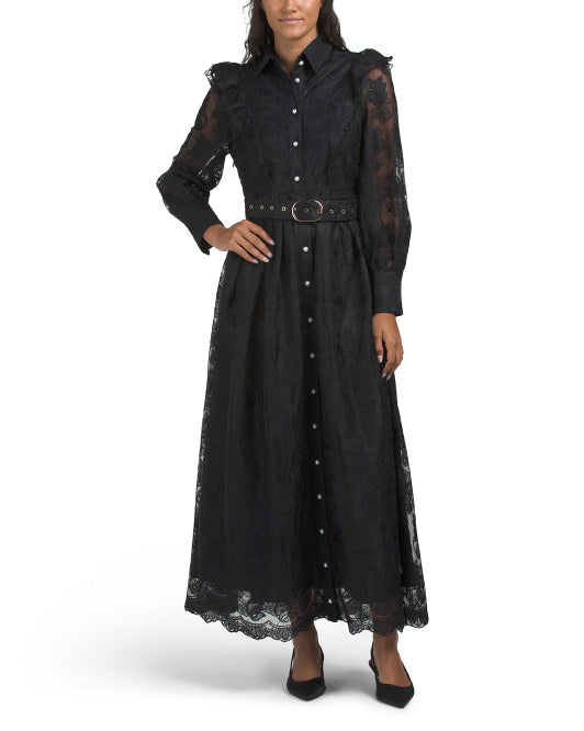 DALIA MACPHEE Long Sleeve Lace Maxi Dress