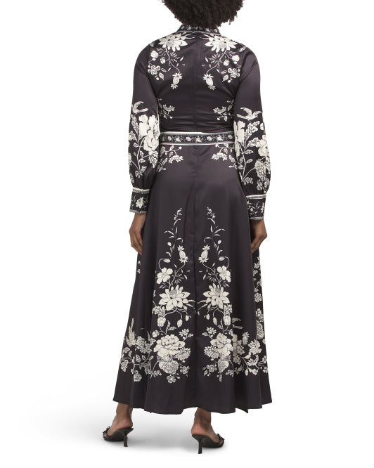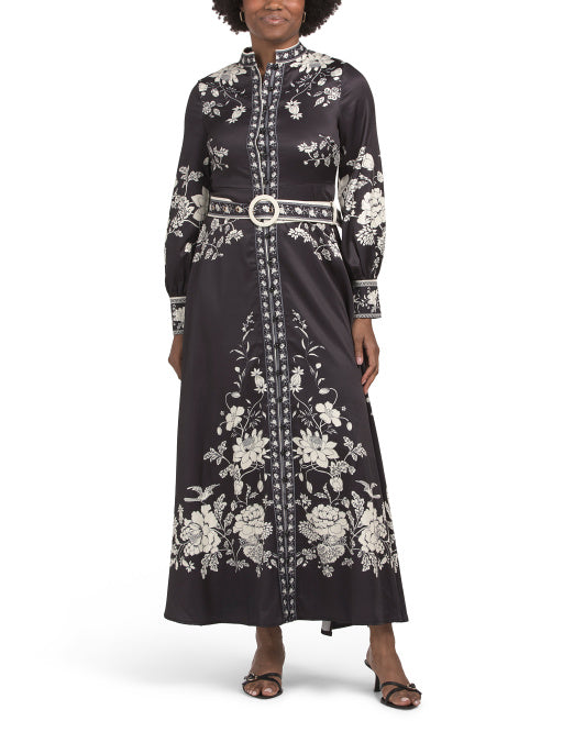 DALIA MACPHEE Long Sleeve Mock Neck Maxi Dress With Belt