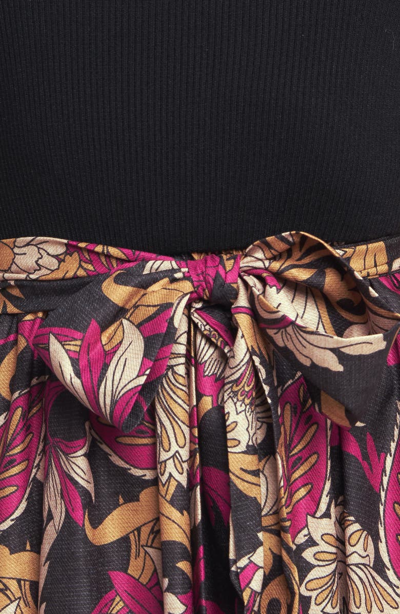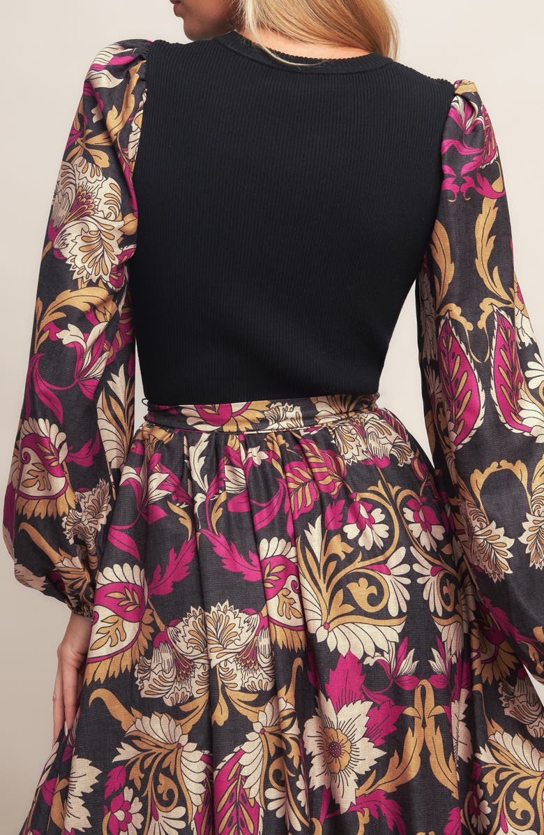 FLYING TOMATO Long Sleeve Mixed Media Fit & Flare Dress
