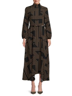 Halston Geometric Print Maxi Dress