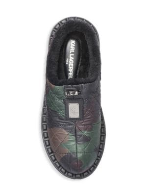 Karl Lagerfeld Paris Faux Fur Camouflage Camping Slippers