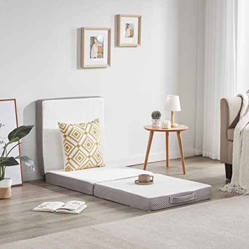 COMFORT AND SUPPORTIVE FOAM: In order to meet the needs of different people for the thickness of the mat, we have added a new size option of 3 inch! The fold up bed mattress features a 2-Layer design that includes gel-infused memory foam and high-density support foam, which creates a medium-firm that balances the comfort and support.