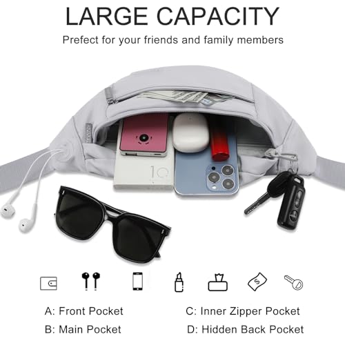 MAXTOP Large Crossbody Fanny Pack with 4-Zipper Pockets,Gifts for Enjoy Sports Festival Workout Traveling Running Casual Hands-Free Wallets Waist Pack Phone Bag Fits All Phones