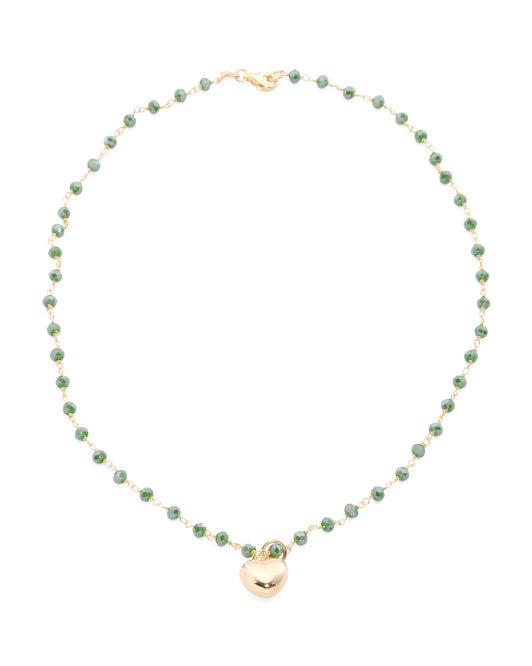 MILOR SILVER Made In Italy Sterling Silver Beaded Heart Charm Necklace