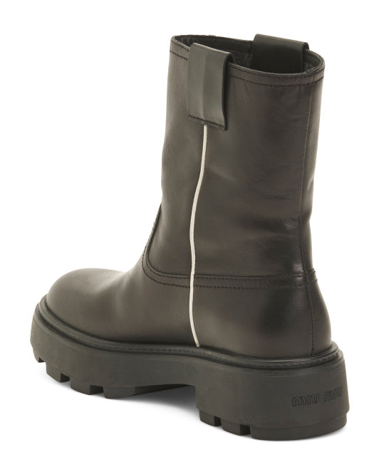 MIU MIU Made In Italy Leather Vit Pull Tab Ankle Booties