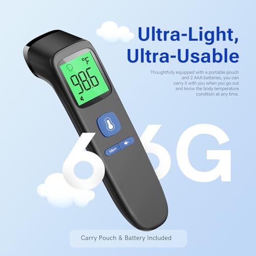 ✅✅EASY TO USE & PORTABLE: One-button control design, simply aim at the center of the forehead keeping a distance, its easy-to-read backlight display will show the temperature, clearly reading even in the dark. Its compact and ergonomically designed body weighs only 0.15 lb, making it comfortable and portable.