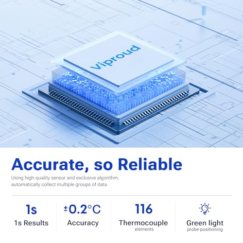 ✅✅FAST & ACCURATE RESULTS: Get results in 1 second with the Viproud Thermometer. Viproud No touch Infrared Thermometer has the advanced infrared detector having passed multiple performance standards and tests, measurement results can be accurate to 0.1℉/℃, accuracy ±0.4℉/±0.2℃.