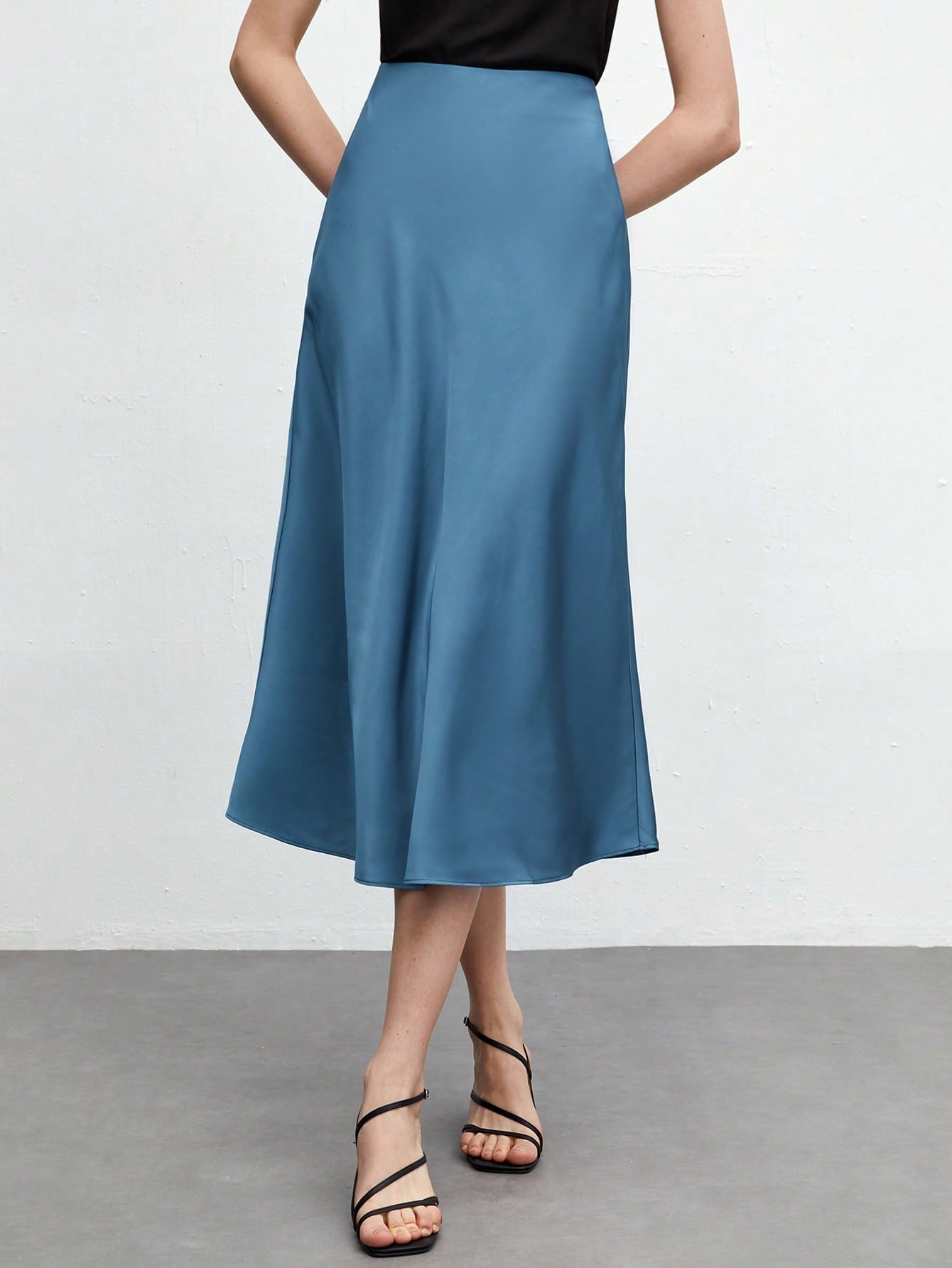 SHEIN BIZwear Solid A-line Satin Skirt Workwear