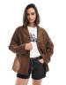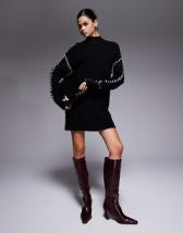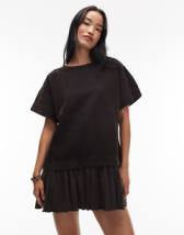 Threadbare long sleeve midi dress with poplin skirt in khaki
