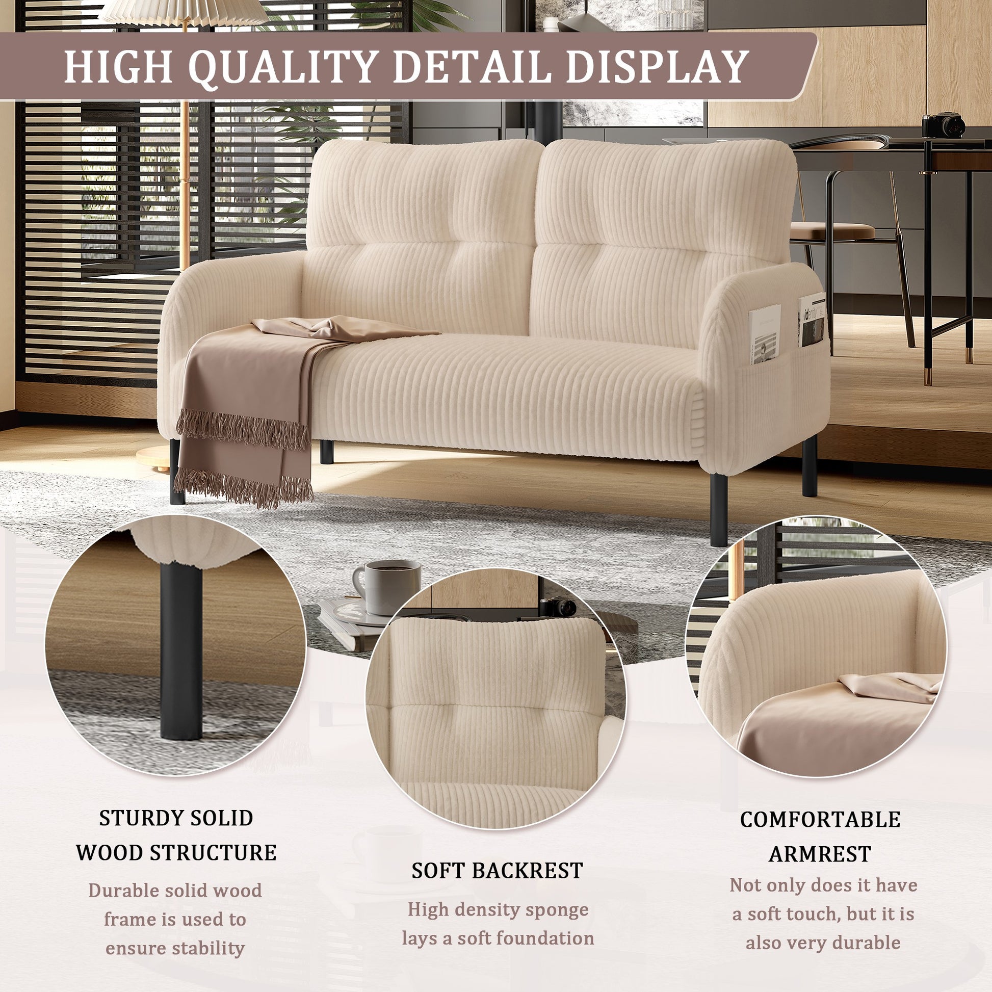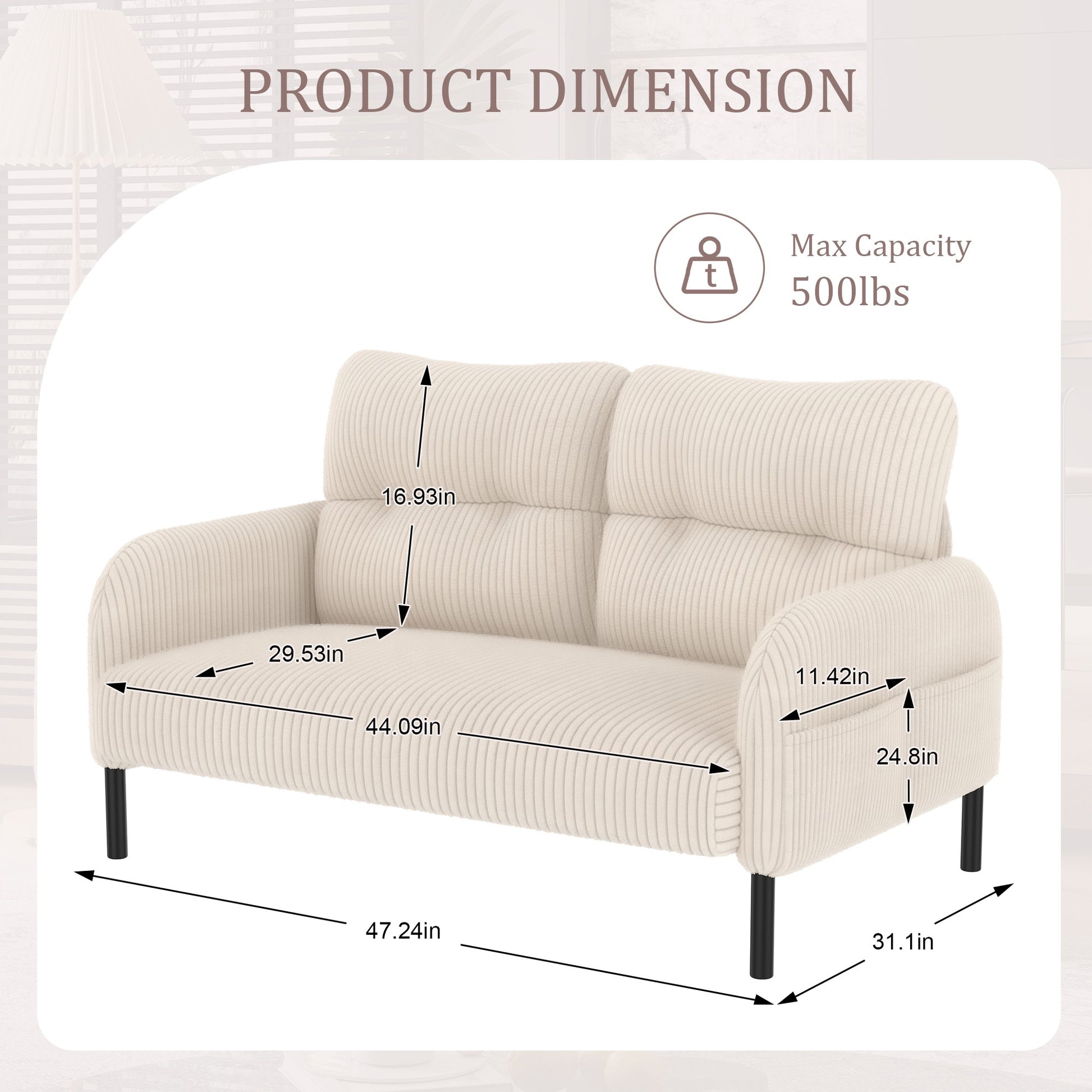 Walmart 47" Small Loveseat Sofa Couch for Small Spaces,Corduroy Upholstered 2-Seater Love Seats for Apartment, Bedroom,Office,Beige