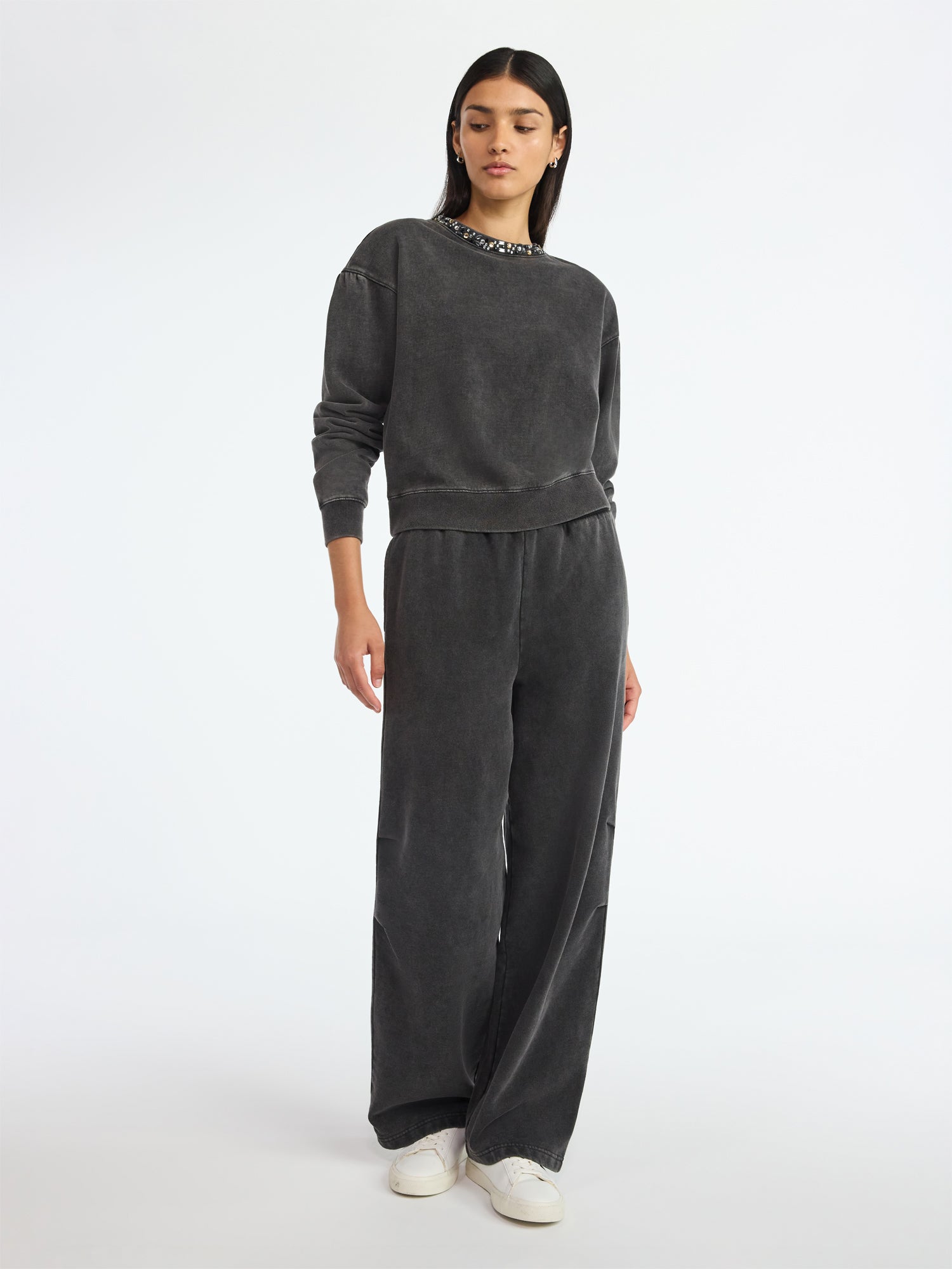 Walmart Scoop Women’s and Women's Plus Mineral Washed Rhinestone Crewneck Sweatshirt, Sizes XS-4X